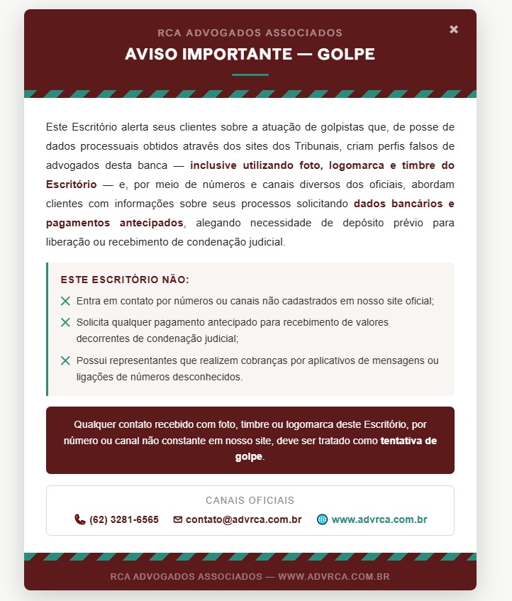 Fundado em 2013, o RCA Advogados – Carneiro, Albuquerque e Ferreira Advogados é um escritório multidisciplinar que atua com excelência em diversas áreas do Direito. Sua presença é consolidada em Goiás, Distrito Federal e São Paulo, distinguindo-se pela condução responsável e estratégica das demandas. A atuação é pautada em rigor técnico, ética profissional e constante aprimoramento, assegurando aos clientes soluções jurídicas precisas, eficazes e alinhadas às necessidades contemporâneas